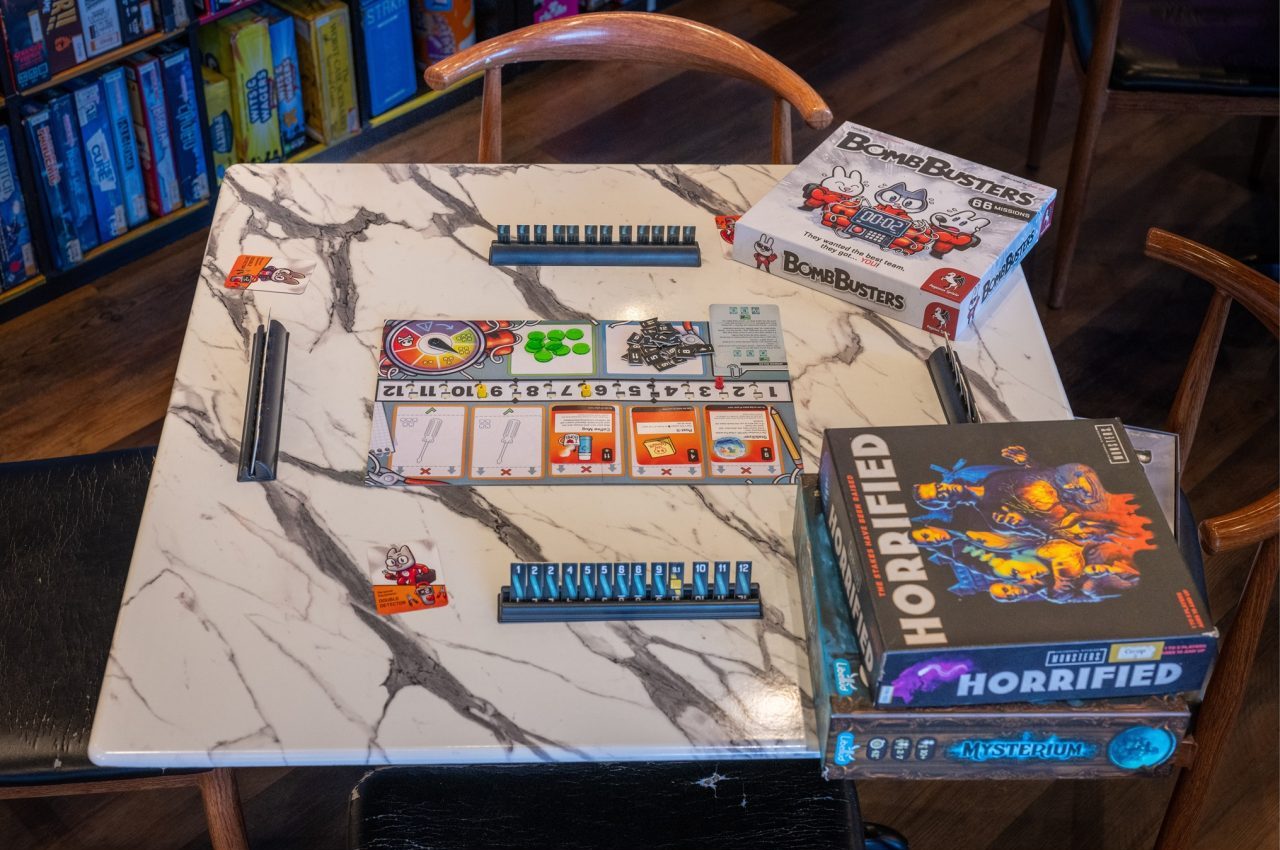 Our game library caters to all. Whether you’re in for light hearted laughs, brutal competition, old favorites or the latest games, you can find it on our shelves.